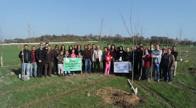 Trakya Üniversitesi Eğitim Fakültesi Zihin Engelliler Öğretmenliği Bölümü’nde eğitim gören 7 öğrenci ile Özel Edirne Özel Eğitim Okulu’ndan 13 öğrenci ‘Özel Çocuk, Özel Ağaçlar’ Projesi kapsamında Edirne Belediyesi’ne ait TOKİ Fırınlar Sırtı Mevkii’nde 5 adet Amerikan Dış Budağı, 5 adet Ihlamur ve 5 adet Batı Çınarı türünde fidan dikimi gerçekleştirdi.