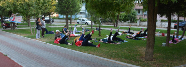 Sabahları Atatürk Bulvarı, akşamüstüleri de Konakaltı Kültür Merkezi ve Karamehmet Mahallesi Menteşe Kooperatifleri bölgesinde yapılan egzersizlere, 7’den 70’e herkes katılabiliyor.