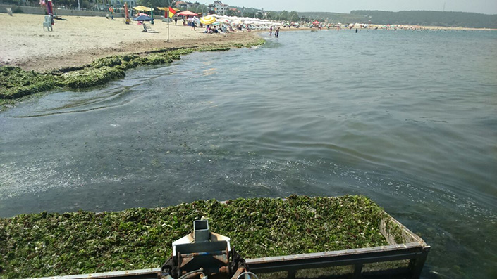 Çalışmalar yaz sezonunun başından bu yana eksiksiz olarak devam ediyor. Amfibik araç ile başlayan çalışmalar kapsamında Mavi Bayraklı Cebeci Halk Plajı’nda 10 ton yosun toplandı. Toplanan yosunlar bertaraf tesisine nakledildi.