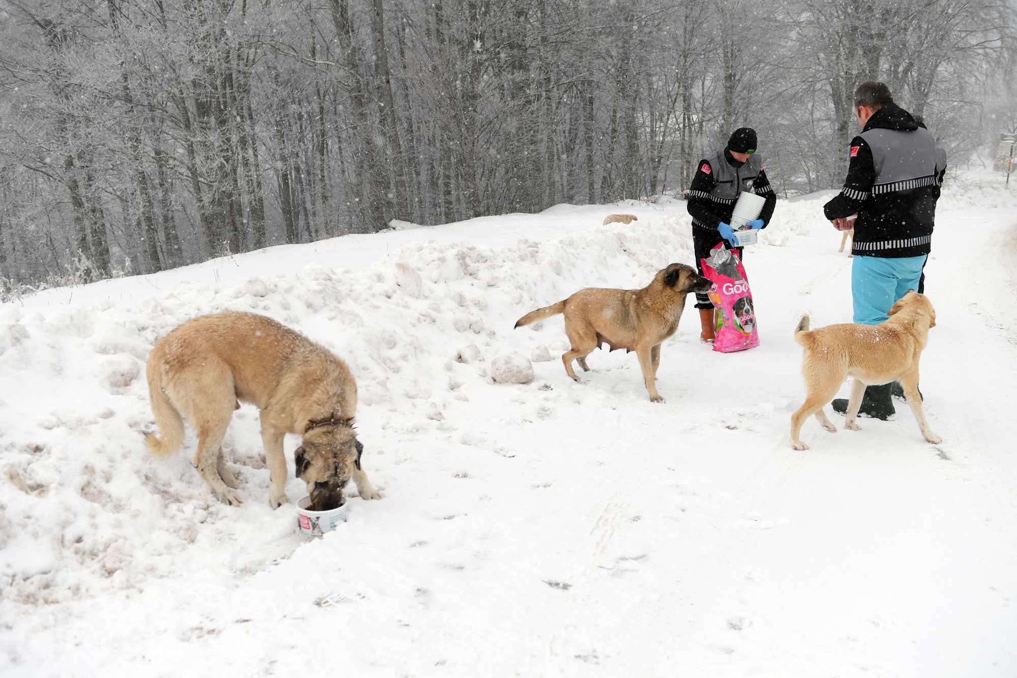 Osmangazi Belediyesi, Uludağ’daki sahipsiz hayvanların soğuk kış aylarında açlıktan ölmemesi için, belirli noktalara düzenli olarak yiyecek bırakmaya devam ediyor.