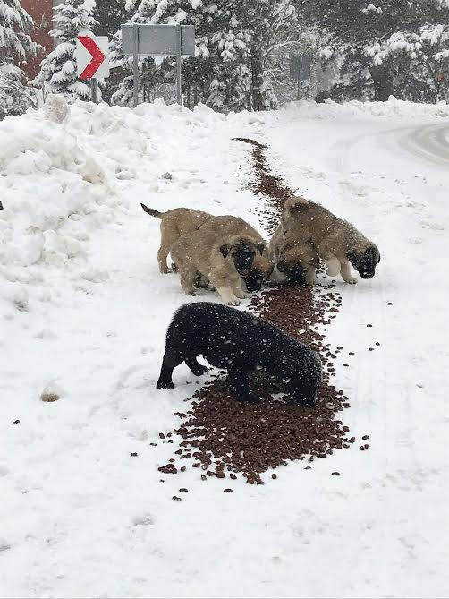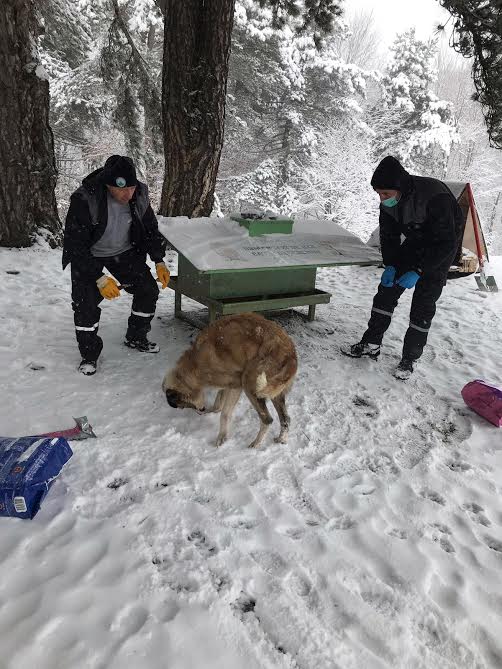 Osmangazi Belediyesi, yoğun kar yağışının yaşandığı Uludağ’da yiyecek bulmakta zorlanan sahipsiz hayvanlar için yol kenarlarına mama bıraktı.