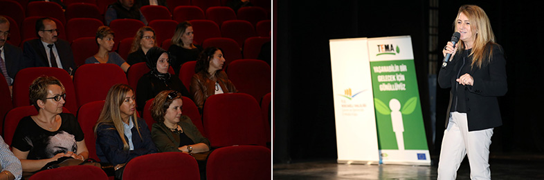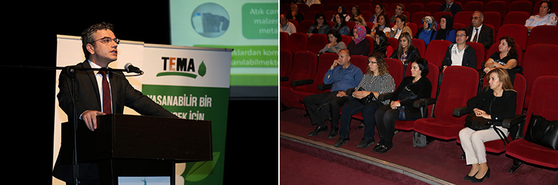 İklim değişikliği hakkında bilgilendirme yapan Nermin Tol, İklim değişikliğini tüm insanlığı ilgilendiren bir sorun, iklim değişikliğini, çevre kirliliğini önlemek, azaltmak için eğitim çalışmaları çok önemlidir. Eğitim çalışmalarını okullarda ve kurumlarda sürdürecek olan değerli öğretmenlerimize çok büyük görev düşüyor. “Sıfır Atık projesi ile israfın önlenmesini, kaynakların daha verimli kullanılmasını, atık oluşum sebeplerinin gözden geçirilerek atık oluşumunun engellenmesi veya minimize edilmesi hedefleniyor. Atığın oluşması durumunda ise kaynağında ayrı toplanması ve geri kazanımının sağlanmasını kapsayan atık yönetim sistemi uygulanıyor” ifadelerini kullandı. Nermin Tol ayrıca “Evlat Aşkına” isimli proje hakkında da katılımcıları bilgilendirdi.