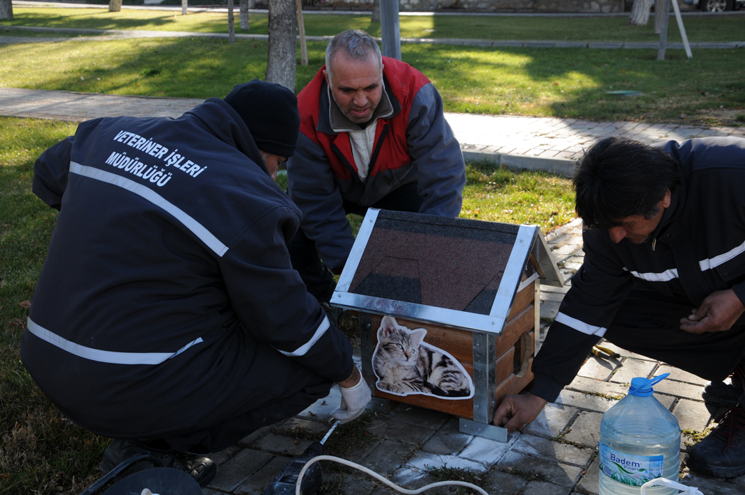 Sokak hayvanları için uygun ortam oluşturma gayret ve çabası içerisinde olan Kırşehir Belediyesi Veteriner İşleri Müdürlüğü ekipleri şehir merkezinde ve parklarda yaşayan kedilerin ve köpeklerin olumsuz hava şartlarından korunmalarını sağlamak amacıyla İlimizde bulunan muhtelif parkalara kedi evi, köpek evi kuruyor.