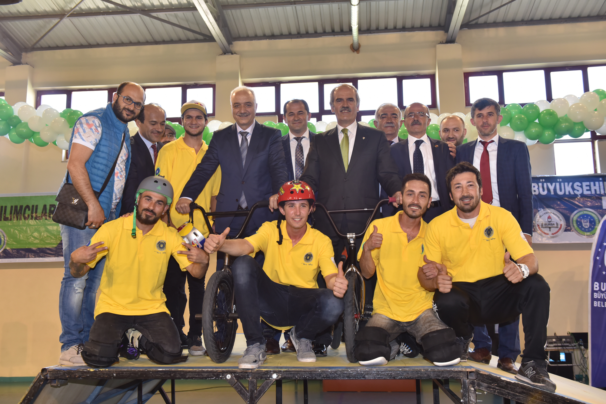 Konuşmaların ardından da spor müsabakaları başladı. Yarışmacılar, salonu dolduran arkadaşlarının tezahüratları eşliğinde birincilik için yarıştı. Etkinlikte, profesyonel sporculardan oluşan Büyükşehir Action Team’in paten ve bisiklet gösterisi ise nefes kesti. Başkan Altepe ve protokol üyeleri, daha sonra yarışmalarda dereceye giren öğrencilere madalyalarını verdi.