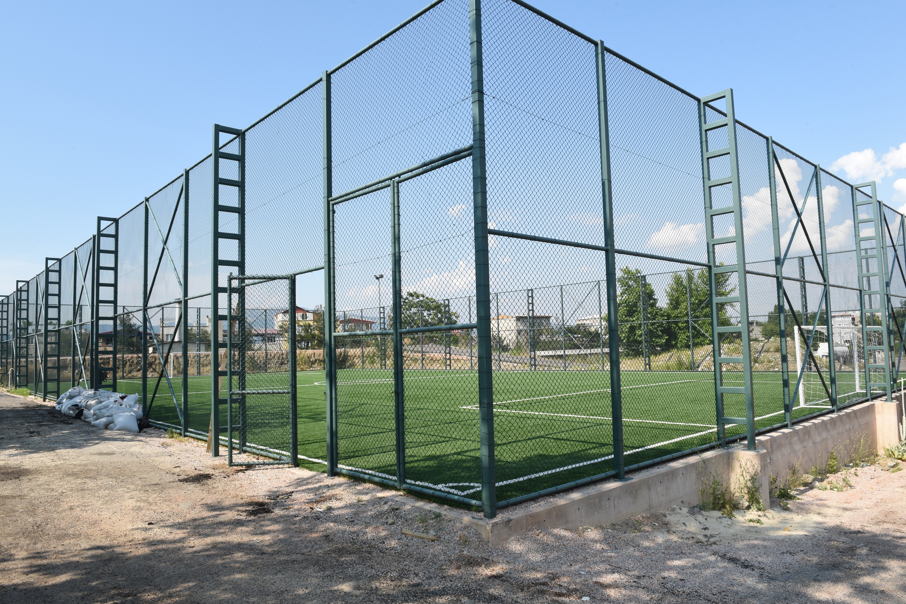 Yeni stadyumun yanı sıra, amatör kulüplere sahalar, okullara spor salonları, branşlara özel tesisler ve yüzme havuzlarıyla tüm semtlere yürüme mesafede tesisler kazandıran Büyükşehir Belediyesi, Bursa’nın sporda da marka bir kent olması hedefine emin adımlarla ilerliyor. Özellikle yoğun yapılaşma nedeniyle sosyal donatı alanı ve spor alanından mahrum kalan mahalleler de bir bir spor tesislerine kavuşuyor. Yeterli yeşil alan ve spor alanı bulunmayan Değirmenönü Mahallesi’nde de Büyükşehir Belediyesi’ne ait şantiyenin bir bölümü futbol sahası olarak düzenlendi. Açılışa hazır hale getirilen futbol sahası halka açık olarak bölge gençlerine hizmet verecek.