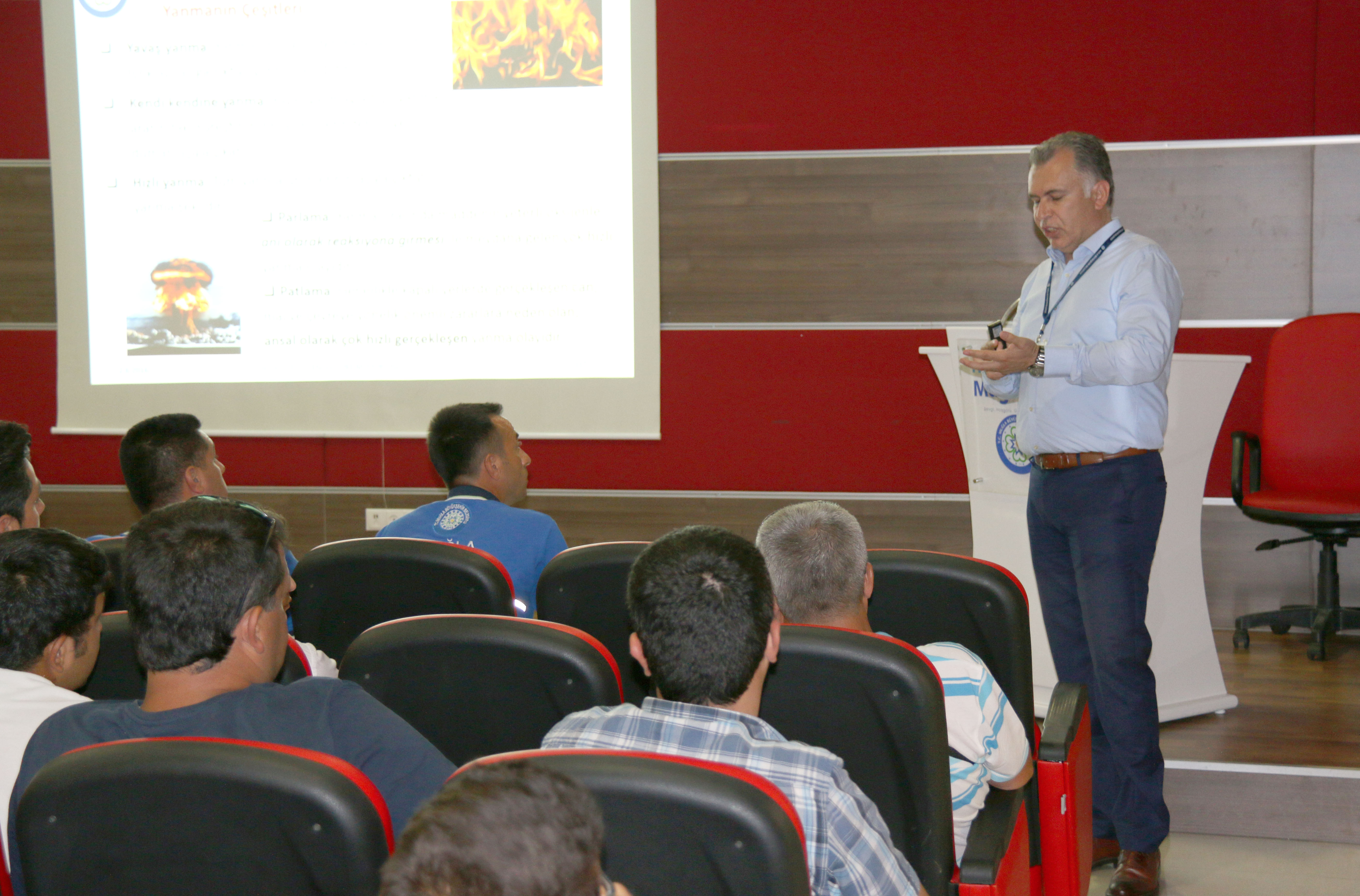 Muğla Büyükşehir Belediyesi Gazi Mustafa Kemal Atatürk Kültür Merkezi’nde düzenlenen eğitime 126 personel katıldı. Programın Oryantasyon bölümünde sunum yapan İnsan Kaynakları ve Eğitim Dairesi Başkanlığı  Eğitim Şube Müdürü Zerrin Kılınç Muğla Büyükşehir Belediyesinin vizyonu, misyonu, temel değerleri, organizasyon yapısı, üst yönetim kadrosu, Daire Başkanlıklarının görevleri ve hizmet binaları hakkında bilgi verdi. Temel İş Sağlığı ve Güvenliği ile ilgili çok tehlikeli ve tehlikeli sınıfta yer alan işlerde görev yapan personel 16 saat eğitim alırken az tehlikeli işlerde görev yapan personel 8 saat eğitim aldı. İş Güvenliği Uzmanı Hüseyin Karaova ve İşyeri Hekimi Levent Tetik tarafından Çalışma Mevzuatı, çalışanların yasal hak ve sorumlulukları, kişisel koruyucu donanım kullanımı, elektrikten kaynaklanan tehlikeler, iş ekipmanlarının güvenli kullanımı, iş kazası, meslek hastalığı, işyeri temizliği ve düzeni konularında eğitim verdi.