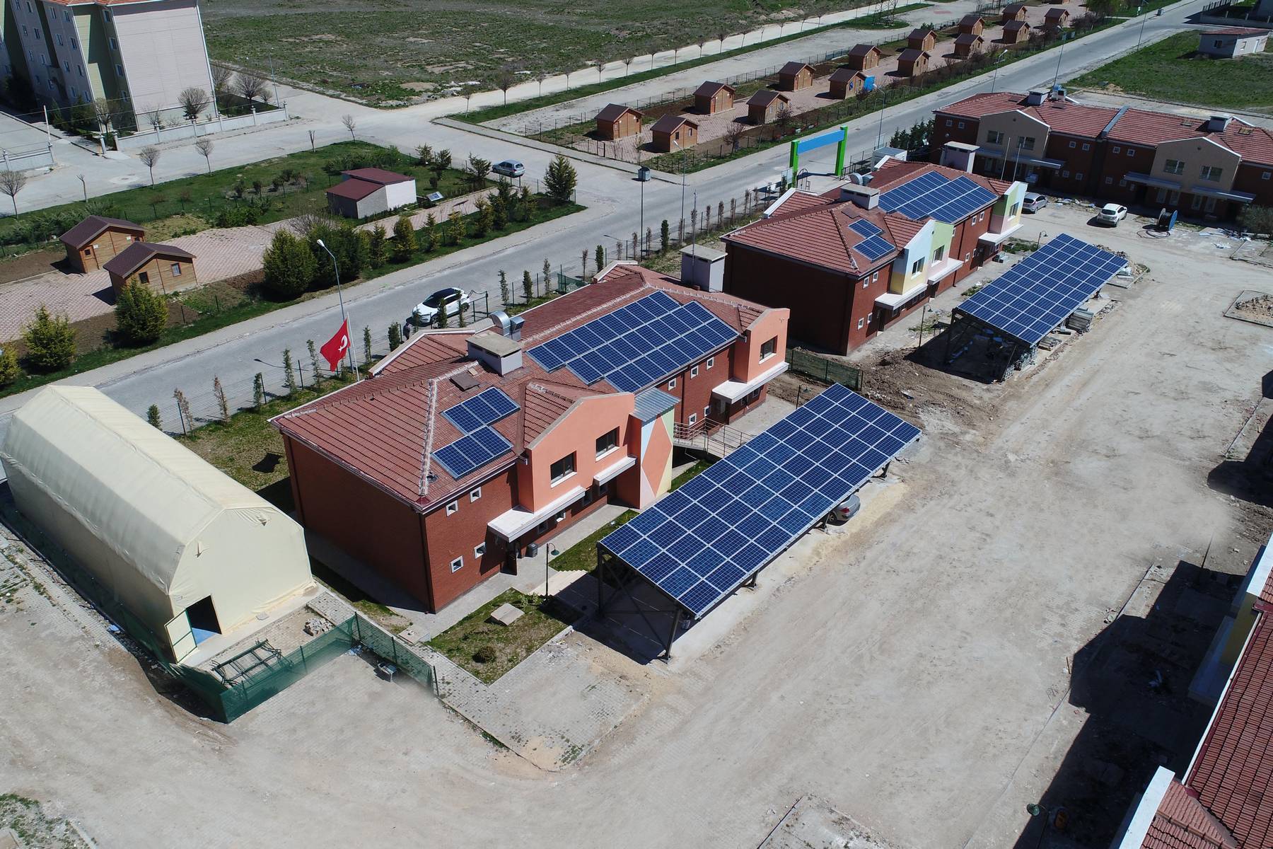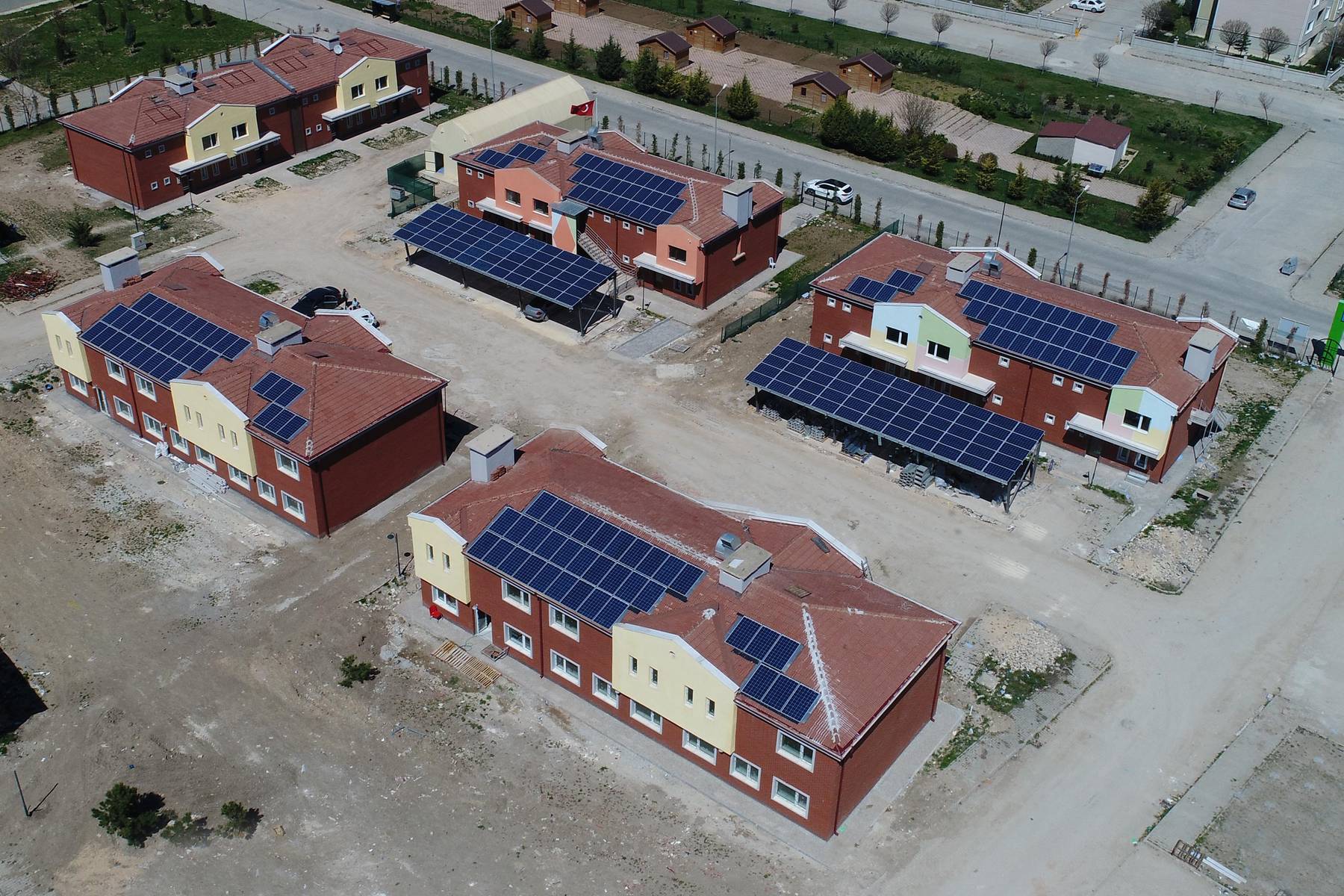 Yaşam Köyü’nün çatılarında su yalıtımı ve kiremit örtüyle bütünleşmiş bir görüntü sağlanması için diğer çatı uygulamalardan farklı inovatif bir uygulama olan modüller tercih edildi. Projede güneş panellerini çatı örtüsüne entegre olarak kiremit kaplama ile bütünleşik şekilde kullandı. Bu sayede çatıda su sızdırmazlığının sağlanması, tadilat ve işçiliğin azaltılması, estetik bir görünüm kazandırılması gibi Türkiye’de güneş enerji santralleri uygulamalarında bir ilki de gerçekleştirmiş oldu. GES kurulumunun ardından, simülasyon sonuçlarına göre yıllık öngörülen üretim 233.444 kWh iken; kaçınılan CO2 Emisyon değerleri ise 140.067 kilogram.