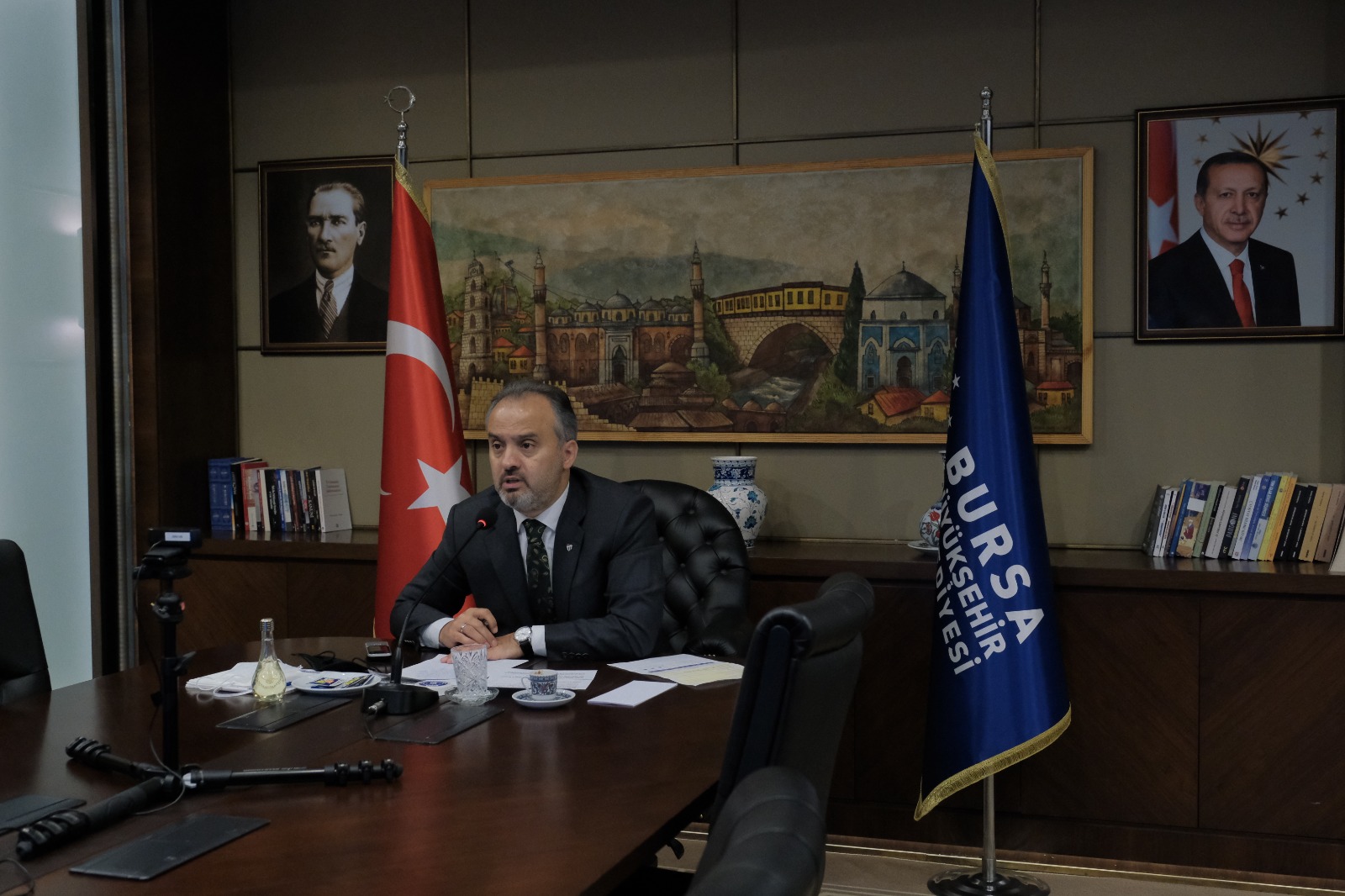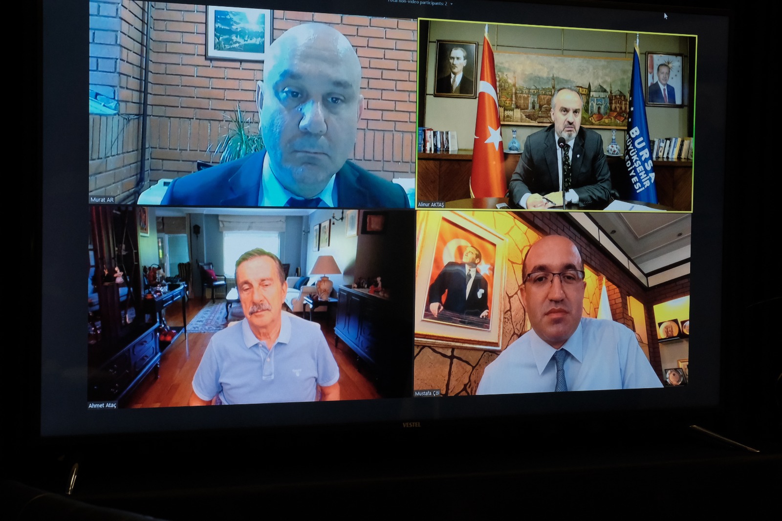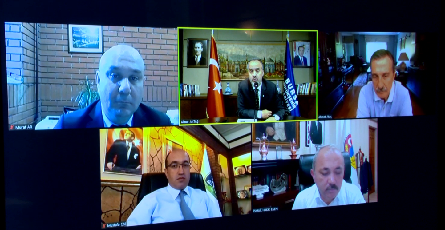 Birlik Başkanımız Alinur Aktaş başkanlığında telekonferans yöntemiyle gerçekleşen toplantıya encümen üyelerimiz Balıkesir Büyükşehir Belediye Başkanı Yücel Yılmaz, Çankırı Belediye Başkanı İsmail Hakkı Esen, Tepebaşı Belediye Başkanı Ahmet Ataç, Sandıklı Belediye Başkanı Mustafa Çöl ve Birlik Müdürü Murat Ar katıldılar.