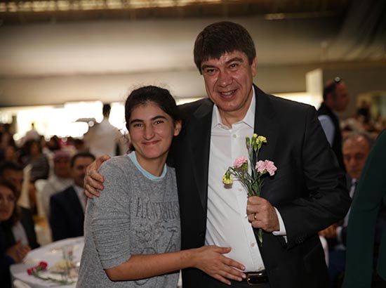 Cam Piramit’te gerçekleştirilen 2 bin kişilik yemeğe Antalya Valisi Münir Karaloğlu eşi Sevim Karaloğlu, Ak Parti Antalya Milletvekili Mustafa Köse Büyükşehir Belediye Başkanı Menderes Türel, eşi Ebru Türel, Muratpaşa Kaymakamı Sedat Sırrı Arısoy, İl Milli Eğitim Müdürü Yüksel Arslan, Büyükşehir Belediyesi Genel Sekreteri Birol Ekici, belediye bürokratları, Antalya protokol üyeleri, engelli dernekleri, engelli bireyler ve aileleri katıldı. “Sevgili kardeşlerim, dostlarım, yol arkadaşlarım” diyerek konuşmasına başlayan Başkan Türel,“Birlikte tam 13 seneden beri projeler ürettik, projeler yaptık, çok ilerleme kaydettik, fakat halen daha çok işimiz var. Görme engelli, yürüme engelli, duyma ve konuşma engelli insanlarımızın önünde engel kalmayana kadar mücadeleye, çalışmaya devam edeceğiz. Antalya dünyanın en engelsiz şehri olana kadar çalışmaya devam edeceğiz” dedi.