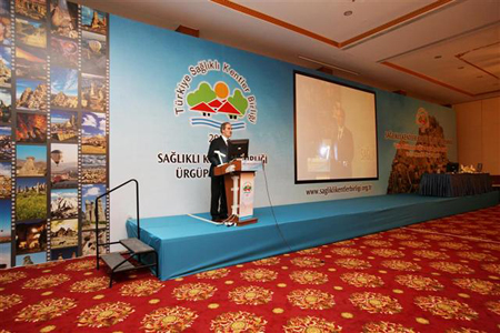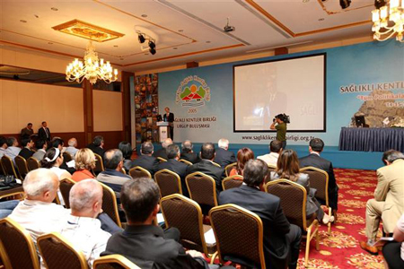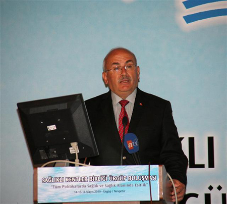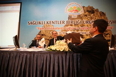 Ürgüp Kaymakamı Çetin Oktay Kaldırım ise konuşmasında, sahip olduğu değerleriyle birçok medeniyete beşiklik eden Ürgüp’te böyle bir toplantının gerçekleşmesinin kendilerini mutlu ettiğini belirtti. Ürgüp’ün dünyanın en büyük açık hava müzesi olduğunu hatırlatan Kaldırım, 2009 yılında 1,5 milyonu yabancı olmak üzere 2 milyon 100 bin turistin Ürgüp’ü gezdiğini vurguladı. Toplantı için Ürgüp’ün tercih edilmesinden ötürü Sağlıklı Kentler Birliği üyelerine teşekkürlerini sunan Kaldırım, “Bu toplantıların, örnek projelerin paylaşılmasının, sağlıklı yaşam alanlarının ve sağlıklı kentlerin oluşturulmasının hem ülkemiz hem de turizm açısından son derece yararlı olduğunu düşünüyorum” dedi.