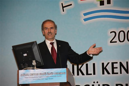 Doç. Dr. Emel İrgil, sağlıkta eşitlik politikasının uygulanması için öncelikle kavramlar üzerinde anlaşılması gerektiğine dikkat çektiği “Sağlıkta eşitsizlik nedir?” başlıklı sunumuna hasta, eşitlik ve eşitsizlik kavramlarının tanımlarını yaparak başladı. Sağlığın belirleyiciliği ile ilgili göstergelerden hareketle eşitsizliklerin ölçülebildiğine işaret eden İrgil, ölçme yöntemleri hakkında ayrıntılı bilgi verdi. Doç. Dr. Bülent Kılıç, “Dünyada sağlıkta eşitsizlik” başlıklı konuşmasında sağlık hizmetlerinde eşitlik politikalarını dünyadan örnekler vererek, tablolar eşliğinde anlattı. Sosyal projelerin ön planda olduğu ülkelerde, insanların sosyal entegrasyon düzeyi arttıkça, hastalanma ve ölüm düzeylerinin azaldığına ve Sağlıklı Kentler Birliği’nin sosyal entegrasyon açısından önemine dikkat çeken Kılıç, sadece sağlık hizmeti sunarak, sağlık ihtiyaçlarının çözülemeyeceğinin altını çizdi. Doç. Dr. Kayıhan Pala ise “Türkiye’de sağlıkta eşitsizlik ve sağlıklı kentler” başlıklı sunumunda sağlıkta eşitsizliği doğuran temel nedenler hakkında bilgi verdi. Türkiye’nin sağlıklı kentlere sahip olma konusundaki durumunu farklı ülkelerle mukayese ederek anlatan Pala, eşitsizliğe karşı mücadele etmenin, insan olmanın gereği olduğunu belirtti.
