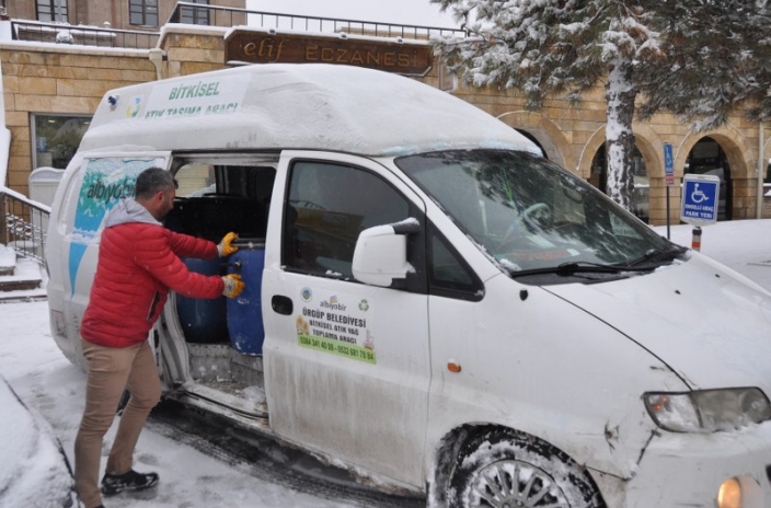 Ürgüp Belediyesi sıfır atık projesi kapsamında evlerde ve iş yerlerindeki atık yağları toplayarak geri dönüşüme katkı sağlıyor.