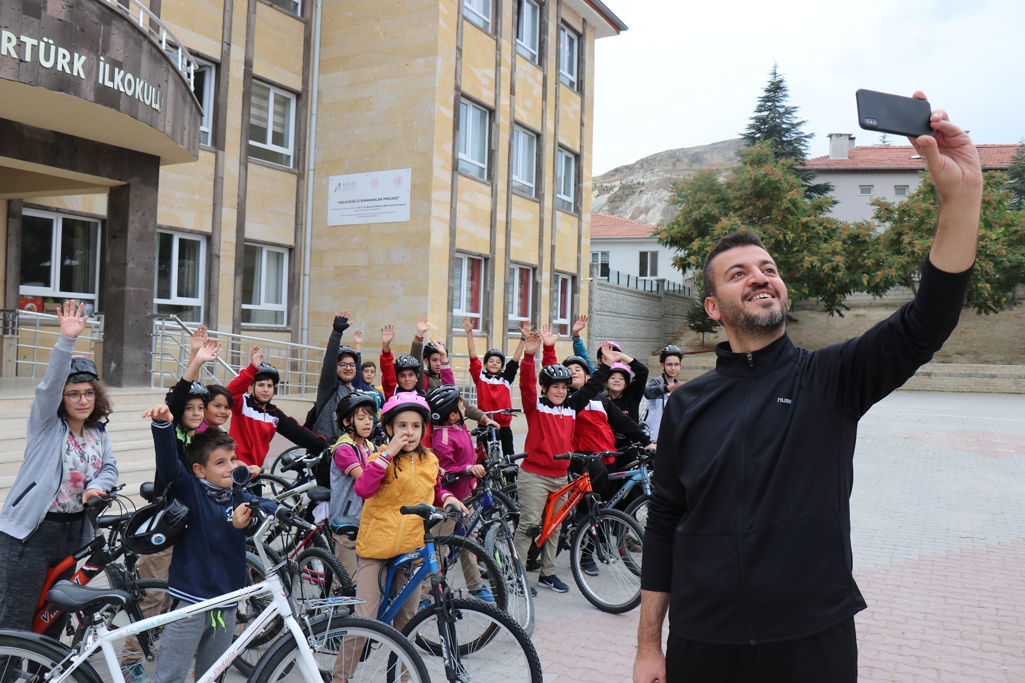 Ayhan Ertürk ilkokulunda düzenlenen programda konuşan Ürgüp Belediye Başkanı Mehmet Aktürk, “Üyesi olduğumuz sağlıklı kentler birliğinin 2017 yılından bu yana, bisiklet kullanımını özendirmek ve yaygınlaştırmak amacıyla, “Haydi Çocuklar Bisikletle Okula” kampanyasına Ürgüp Belediyesi olarak biz de destek veriyoruz. Sağlığa giden en güzel yol bisiklettir.” dedi.