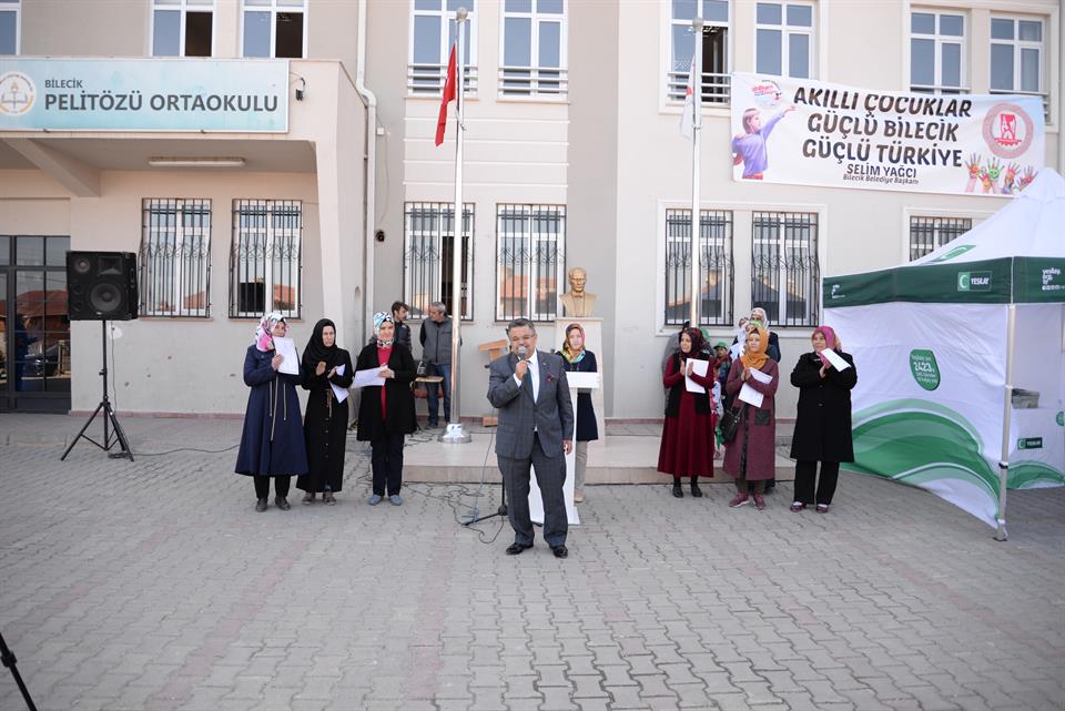 Bilecik Pelitözü Ortaokulunda gerçekleştirilen programa Belediye Başkanı Selim Yağcı, Milli Eğitim Müdürü Fazilet Durmuş, Okul Müdürü Özcan Göktaş, Pelitözü Mahalle Muhtarı Ahmet Aydın, öğrenci ve aileleri katıldı.